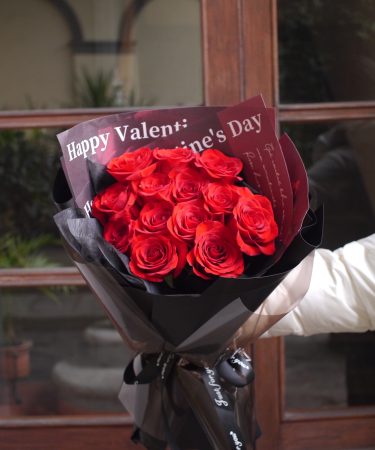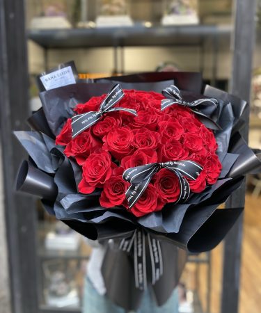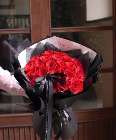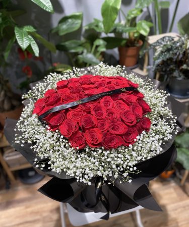 经典红玫瑰加满天星黑色包装