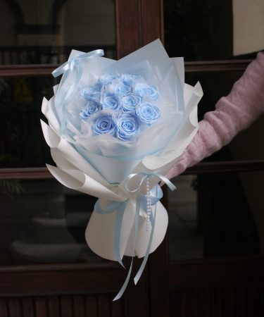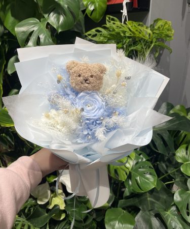小熊款蓝色系永生花束