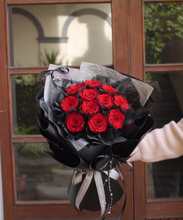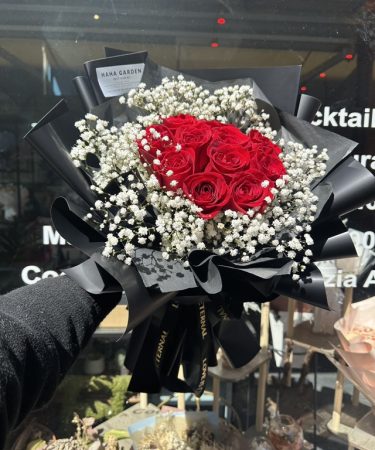 情人节红色永生花银黑包装