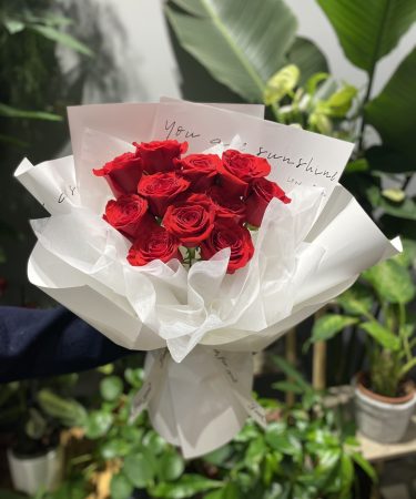 经典红玫瑰加满天星白色包装