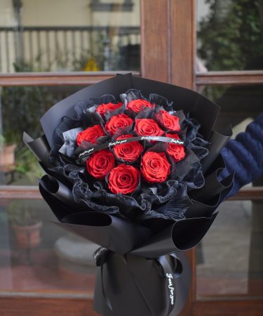 红色永生花加海浪纱黑色包装