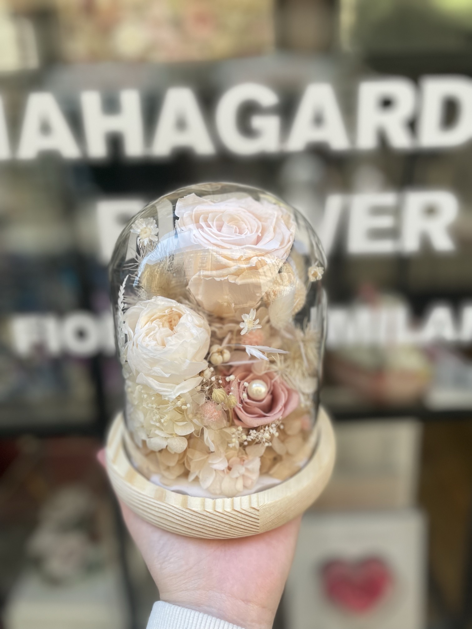 奶茶色玻璃罩系列永生花
