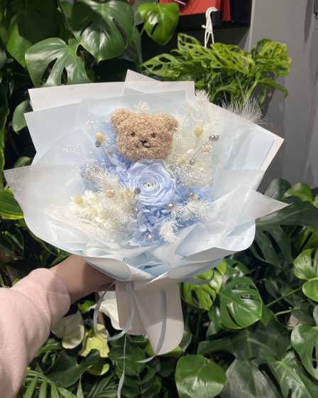 小熊款蓝色系永生花束