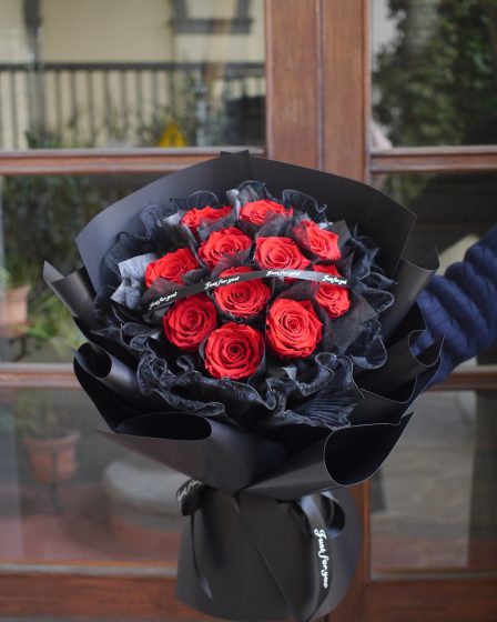 红色永生花加海浪纱黑色包装